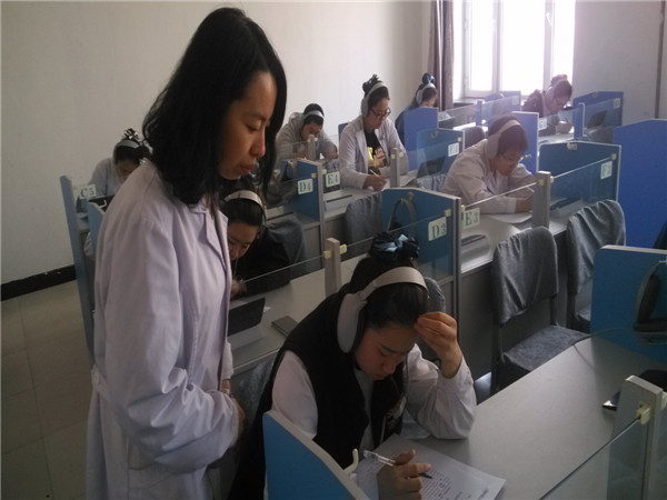 2015年4月25日,我校涉外護理專業(yè)進行了2014-2015年度第二學(xué)期的第一次技能考試。13級涉外護理專業(yè),本次考的是閱讀和寫作。這是她們在我校就讀的第三個學(xué)期。14級涉外護理專業(yè)的學(xué)生考的是聽力和寫作。聽說讀寫這四項技能的考試是涉外護理專業(yè)外語技能考試的主要內(nèi)容,旨在給學(xué)生設(shè)立學(xué)習(xí)的目標(biāo),以考代練,鼓勵她們盡快掌握英語的各項能力。