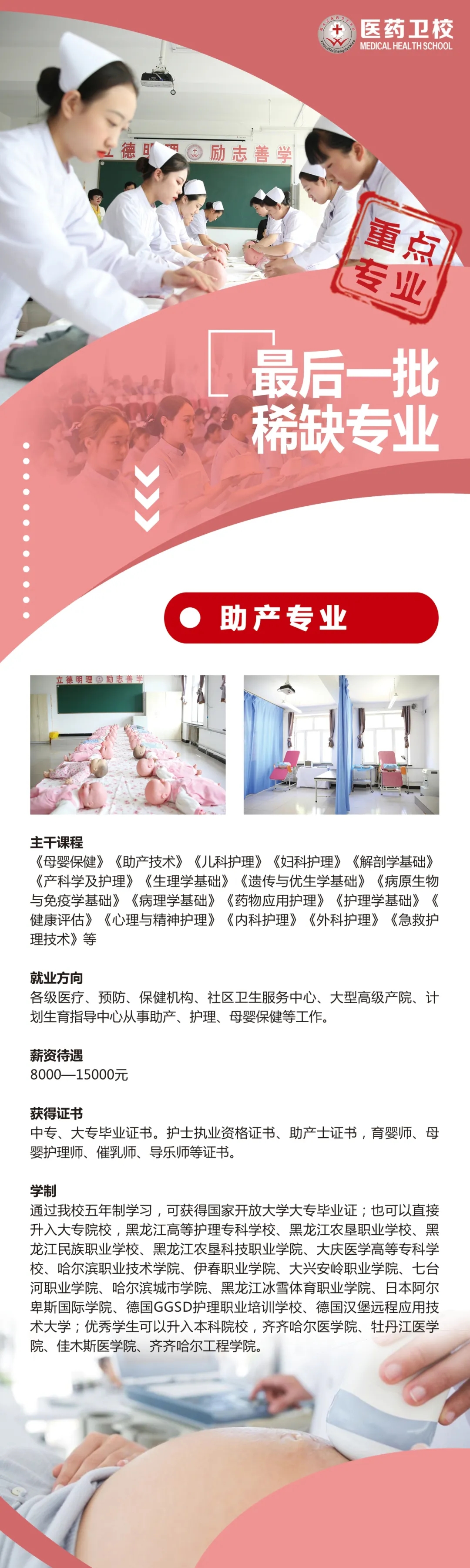 隨著國(guó)民經(jīng)濟(jì)的發(fā)展、人民生活水平的提高和二胎政策的開放,社會(huì)對(duì)婦女保健服務(wù)的人才需求也不斷提高,這標(biāo)志著社會(huì)對(duì)高素質(zhì)助產(chǎn)護(hù)士的需求大大增加。2020年,助產(chǎn)專業(yè)被教育局定為稀缺專業(yè),這意味著我校護(hù)理專業(yè)助產(chǎn)方向畢業(yè)生將供不應(yīng)求。