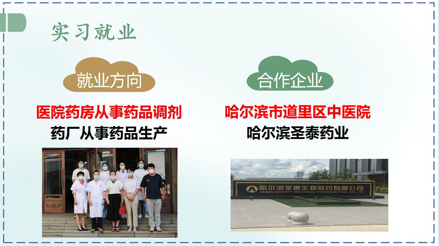 本專(zhuān)業(yè)由我校與道里中醫(yī)院、哈爾濱圣泰生物藥業(yè)等知名企業(yè)聯(lián)合培養(yǎng)。就業(yè)后可在各級(jí)醫(yī)院藥房、藥廠(chǎng)、醫(yī)藥公司、連鎖藥店等從事藥品調(diào)劑,藥品生產(chǎn),藥品銷(xiāo)售等工作。也可選擇自主創(chuàng)業(yè)開(kāi)辦藥店。學(xué)生就業(yè)月薪資在3000-8000以上,銷(xiāo)售及自主創(chuàng)業(yè)薪資上不封頂。