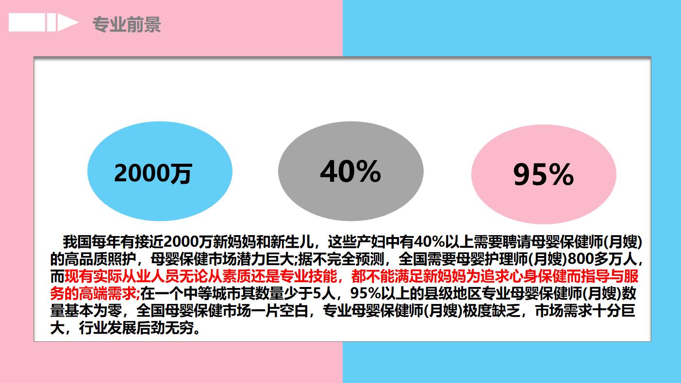 母嬰照護(hù)專業(yè)主要培養(yǎng)從事母嬰照看、母嬰護(hù)理、母嬰保健等母嬰照護(hù)工作的技能人才。