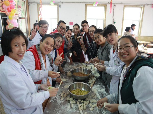大家在一起搟面皮、包餃子,熱鬧非凡。后勤伙食科更是精心為大家準(zhǔn)備了豐盛的自助餐。內(nèi)容豐富、精彩紛呈的聯(lián)歡活動(dòng)由行政校長(zhǎng)助理蘇曉云及就業(yè)辦主任趙楠主持。整場(chǎng)聯(lián)歡會(huì)由4個(gè)集體游戲及9個(gè)節(jié)目組成,精彩的歌舞表演、幽默的小品、緊張比拼的集體游戲充分展現(xiàn)出醫(yī)藥衛(wèi)校年輕向上、團(tuán)結(jié)拼搏、凝心聚力的團(tuán)隊(duì)精神,大家各顯才能,傾情演出,為2015年畫(huà)上了圓滿(mǎn)而歡樂(lè)的句號(hào),在馬上到來(lái)的2016年,醫(yī)藥衛(wèi)校人將繼續(xù)以飽滿(mǎn)的熱情、務(wù)實(shí)的作風(fēng)和勤奮的工作,努力提高教育教學(xué)質(zhì)量,為我們共同的事業(yè)不斷奮斗!