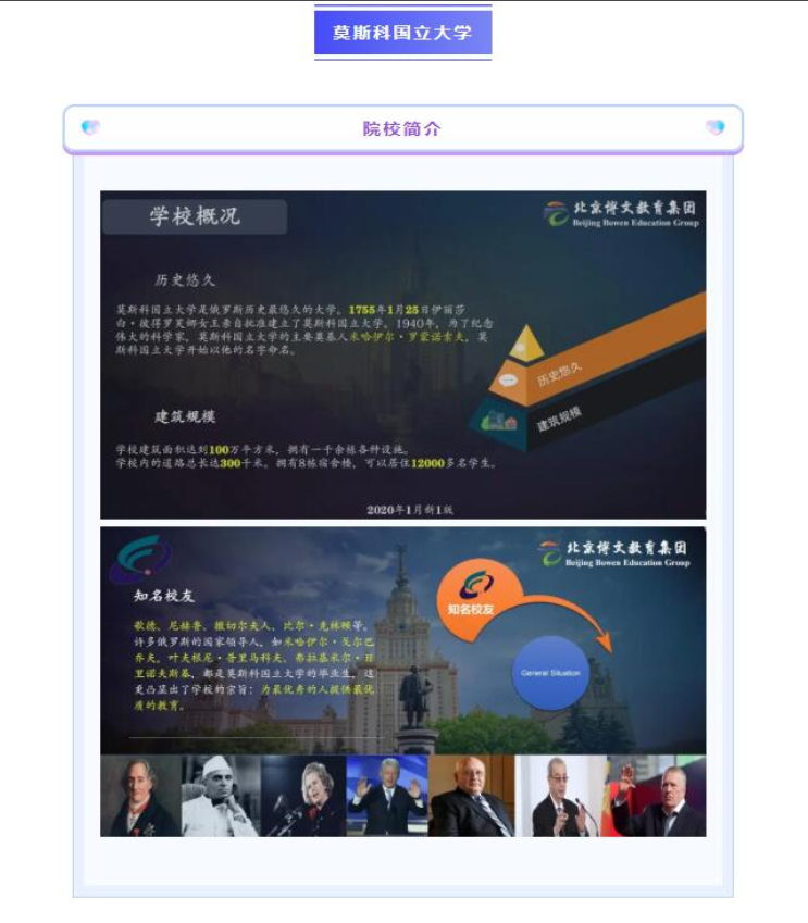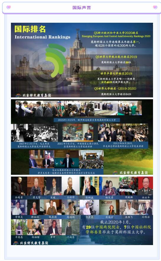 去年是中俄建交七十周年,俄羅斯留學(xué)是如今最普惠、安全的留學(xué)選擇。作為教育工作者,加強(qiáng)中俄文化建設(shè)是期望,促成俄羅斯留學(xué)就業(yè)也成為責(zé)任,我校一直努力拓寬俄羅斯的留學(xué)就業(yè)合作,我校已與全球高排名的多所優(yōu)質(zhì)大學(xué)展開聯(lián)合辦學(xué),為不同層次,不同需求的學(xué)生們開創(chuàng)適合的留學(xué)模式。