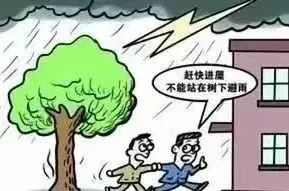 2.打雷、閃電時(shí),千萬不要到樹下或建筑物墻邊躲雨。