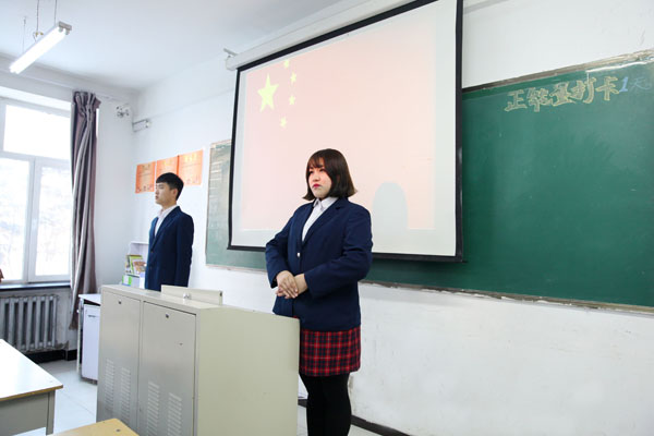 升旗儀式之后,全班同學都表示將會銘記主題——苦練技能,修德勵志,這是時代對我們的召喚,是為了讓我們成為合格的醫(yī)護人員必須具備的品質(zhì),這也是我們的母校黑龍江醫(yī)藥衛(wèi)生學校培養(yǎng)我們的宗旨。作為班主任,在新的學期里,我將帶領全班同學在學業(yè)的關鍵時期銳意進取,堅持不懈,為日后走出校門投身祖國醫(yī)療事業(yè)夯實基礎。