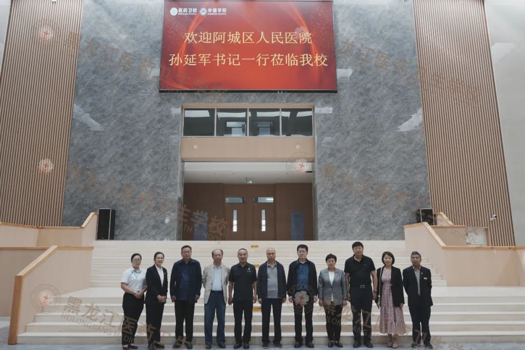 近日,阿城區(qū)人民醫(yī)院黨委書記孫延軍,黨委副書記院長(zhǎng)王憲忠,院紀(jì)委書記副院長(zhǎng)于金才,院黨委委員副院長(zhǎng)工會(huì)主席富學(xué)慧,副院長(zhǎng)尹旭飛,科教科主任王玉葉一行 6 人來(lái)到黑龍江醫(yī)藥衛(wèi)生學(xué)校,與學(xué)校醫(yī)學(xué)檢驗(yàn)專業(yè)、醫(yī)學(xué)影像專業(yè)建立人才培養(yǎng)、培訓(xùn)基地授牌簽約合作。