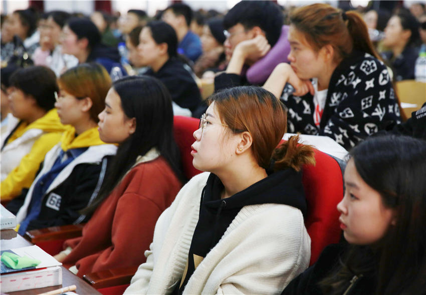 △執(zhí)護輔導(dǎo)學(xué)生全神貫注聽講座
